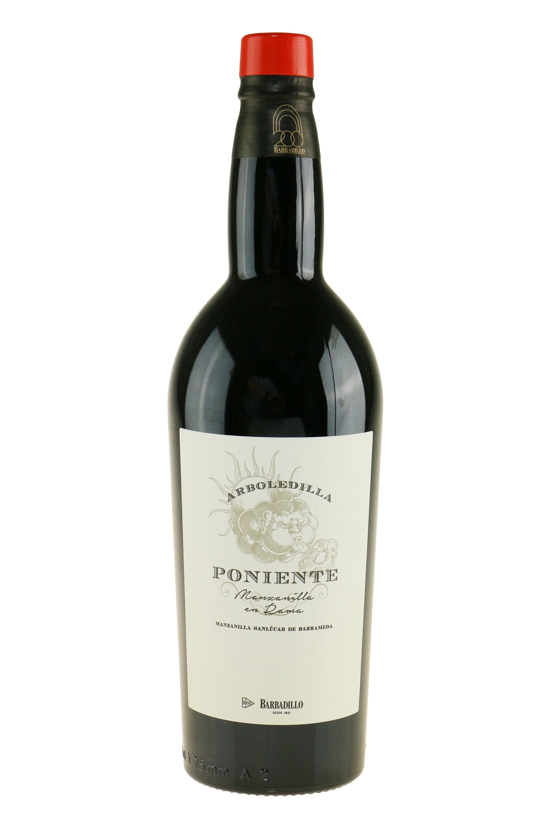 Poniente er modstykket til Levante i Barbadillos duo af manzanillas fra forskellige steder i lagringsbodegaen. Mens Levante ligger i den østlige del, så lagres Poniente ud mod kysten, i den vestlige del som rammes af vinden med samme navn, der blæser frisk og kølig luft ind fra Atlanten. Selvom der kun er cirka 180 meter mellem det sted, de to vine lagres – og at de i øvrigt er identiske på andre punkter (drue, alder) – så er der en distinkt forskel. Smag selv! Vinen er tappet ”en rama”, hvilket vil sige uden filtrering, med en alder på cirka 5 år.